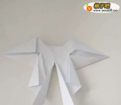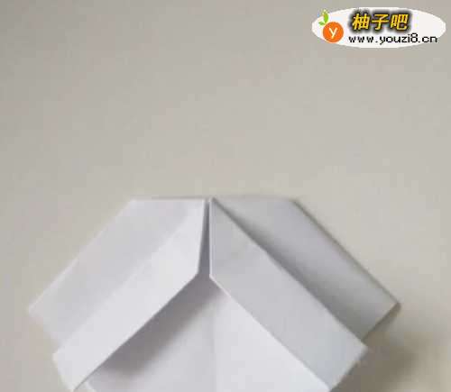 3将顶边对折中间线进行折叠,正反两面都一样,将纸由内向外翻变成如图的样子