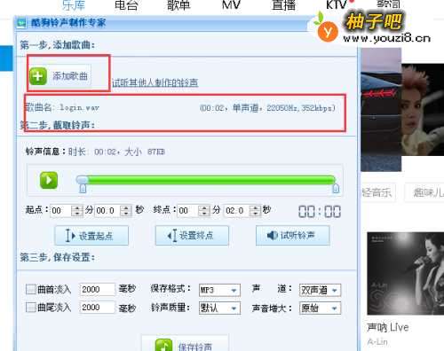 使用酷狗音乐客户端进行铃声制作
