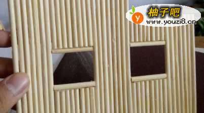 3将筷子横着粘,做小木屋的屋身,两侧的可以将筷子折半粘,粘好后,做一个窗户,粘在屋身的中间,最后将四部分用胶水粘在一起。
