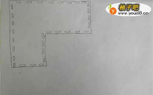 2首先我们我们先来画左上角的一个边框,类似于两个长方形叠加在一起,里面再画上一圈小长方形加以装饰。