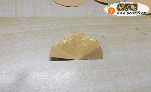 3展开成半圆,可以看见有六瓣,把中间的四瓣涂上胶水。