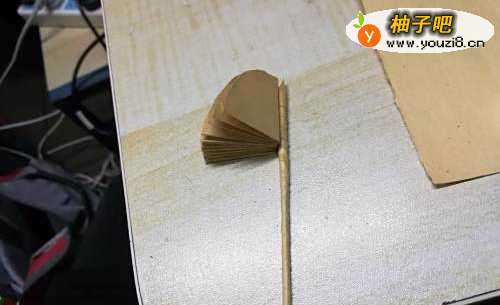 4用剩余纸张,斜卷成一根纸棒。把步骤3的成品粘到顶端。