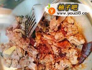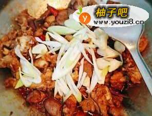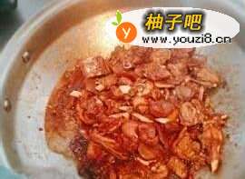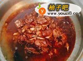 5加入料酒,焖一会后,加入生抽老抽翻炒,上色