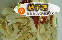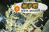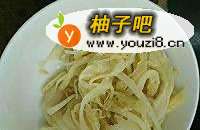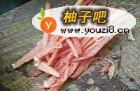 3肉切细丝。像萌妈这样刀工不好的,可以把肉冷冻一会,就比较好切了。