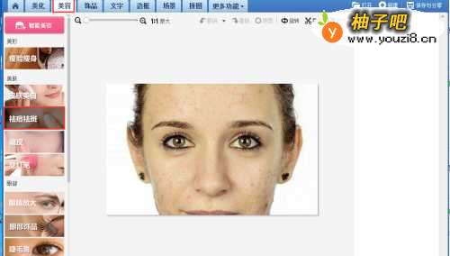 3切换到【美容】选项卡,选择左侧的【祛痘祛斑】。