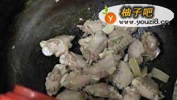 6大火煸炒至鸭翅微微起焦变色后,滴入适量料酒,去腥增香