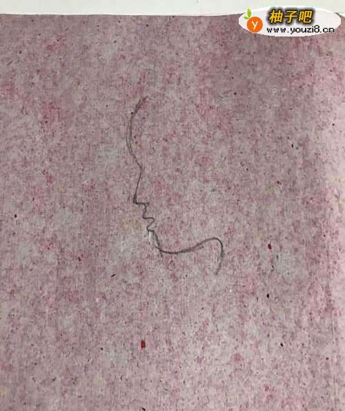2第二步 反面朝上摆放好之后 拿起绘图铅笔先画上人物侧面头像的外线草图轮廓 包括额头 鼻子 嘴巴 下巴等等