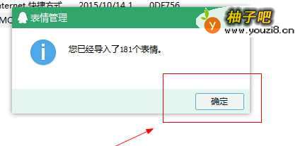 4如图所示,我们看到181个表情已经全部导入到了我们QQ中,我们点击箭头所指的“确定”按钮。