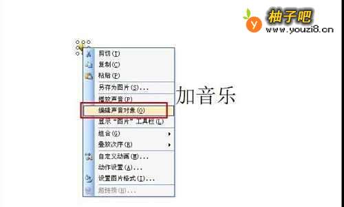 8这个只是前提,最怕的是什么,那就是拷贝到其它地方之后,你必须确定ppt中添加的音频地址和你放置音乐文件的地址是相同的。怎么查看呢?进入ppt文件,找到喇叭播放按钮,右键选择编辑声音对象。
