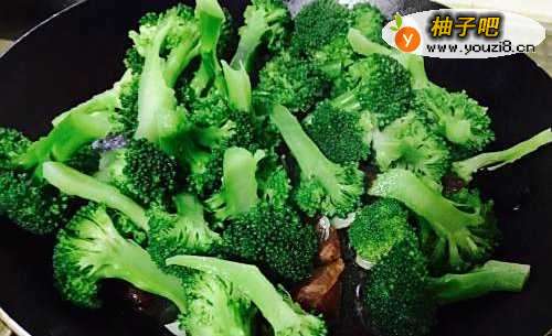 6接着倒入沥干水的西兰花,大火翻炒两分钟,翻炒过程中可以放少许水,起锅之前加入盐和蚝油调味即可。