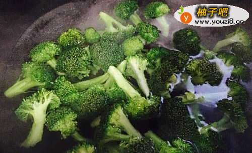 4西兰花大约焯水30秒即可捞出过凉水,沥干备用。