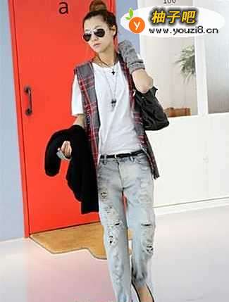 7 穿含有垂线图案衣服是延长身材的最好办法。但不要太过,因为那样会使你看起来像头斑马。一条接缝处含有垂线的牛仔裤就已经足够了。