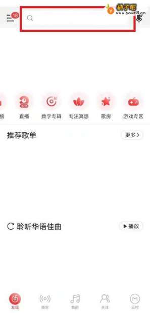 手机号验证登录云音乐,点击搜索图标。