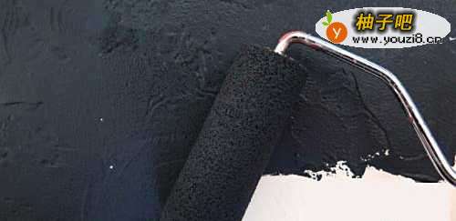 3待质感材料干透后,用滚筒按照从左到右的方向滚刷黑色复古涂料基材。