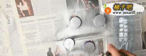 4收集四个瓶盖。找四个瓶盖用来做车轮。