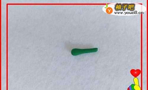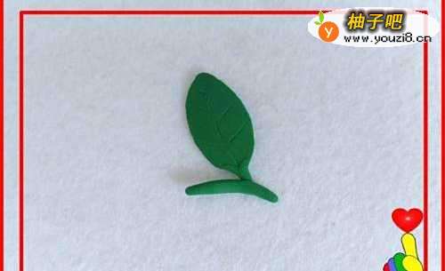 11取绿色彩泥适量,制作“树枝”,并粘合叶子。