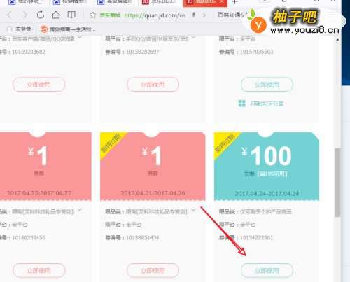 3找到自己需要使用的优惠券,并点击“立即使用”。如图所示: