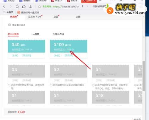 5选择好需要购买的商品后去结算页面,就可以正常的使用该优惠券。如图所示: