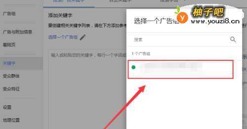 在左侧菜单栏中选中要添加关键词的组