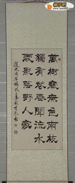 77、画杆:就是卷画用的圆木杆,画上端较细的叫“天杆”,下端较粗的叫“地杆”,