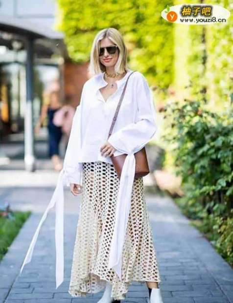搭配六:黑色短靴+深蓝色牛仔短裙+白色假两件衬衫这款白色和黑色背心拼接的假两件衬衫,穿出来时髦又带点性感,下身搭配一条深蓝色牛仔短裙,如果觉得冷可以搭配一双光腿神器,很时尚、显身材。