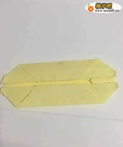 5第五步 折叠完之后 中线两边向外第二道折痕都向里奔中线折叠 如图所示