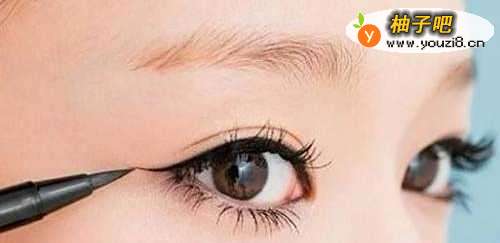 化眼妆第一步画眼线,从中间开始画,然后补上前后两边,不要里出外进,勤加练习就好。