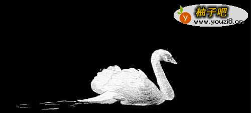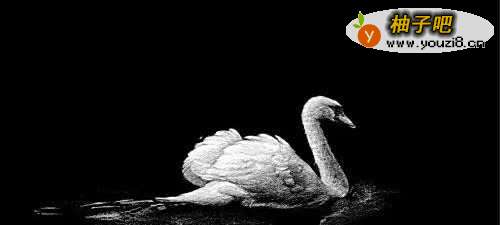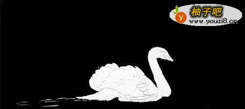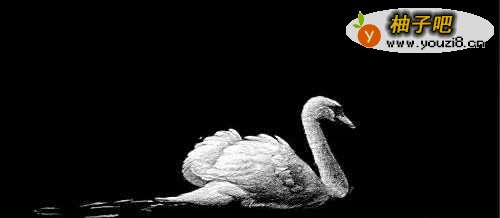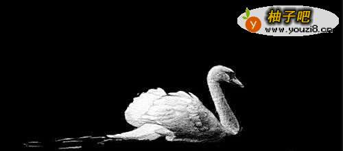 这是一只美丽的白天鹅,所以这次画黑色的背景。根据下图,用2B铅笔画出天鹅的外轮廓形体。