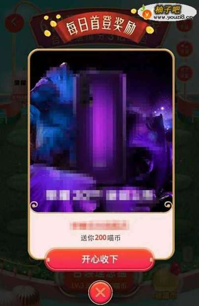 2每天第一次登录都会随机领取首登奖励的喵币,我们点开心收下就好啦
