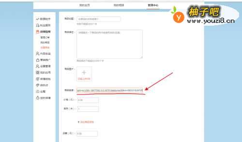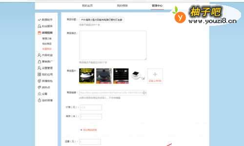 8把复制的宝贝链接地址粘贴到刚才微博的商品链接处。然后点一下左键。