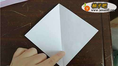 有双色纸的话,尽量的使用双色纸,那样会省去好多步骤。我们先把彩纸的两角对折,如图所示。