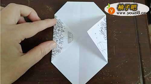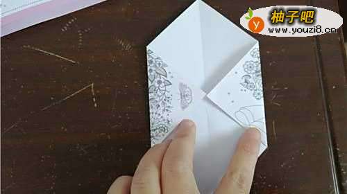 4接下来,再把彩纸上面部分向下折,如图所示。