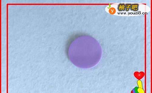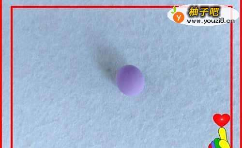 取蓝紫色彩泥适量,滚搓一个小圆球。