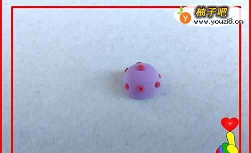 5用工具把细长条制作成小圆点,粘合在此近半圆球上面,作为装饰。