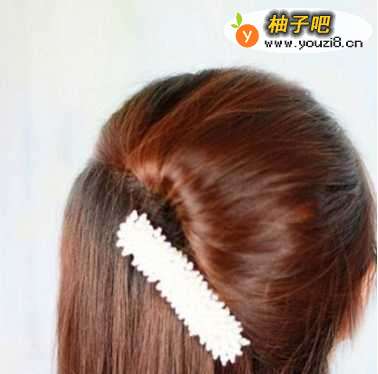 4用小夹子固定好马尾部分,再别上一个小发饰,第一款简单公主头就完成了。