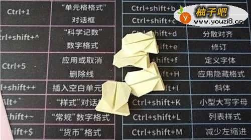 5其他的彩纸,我们按照上面的步骤折好,如图一。再把两个拼在一起,可以使用胶水粘合,如图二。