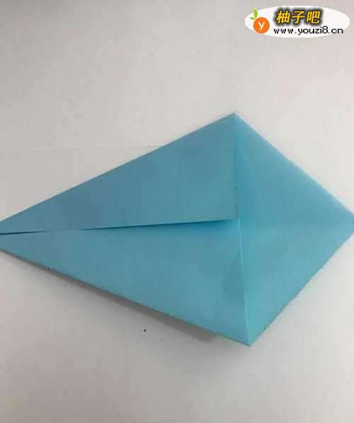 6第六步 上下对折好之后 再左右对折 然后再从下面三分之一处向上斜着折叠一道 再取开按折痕向里回折