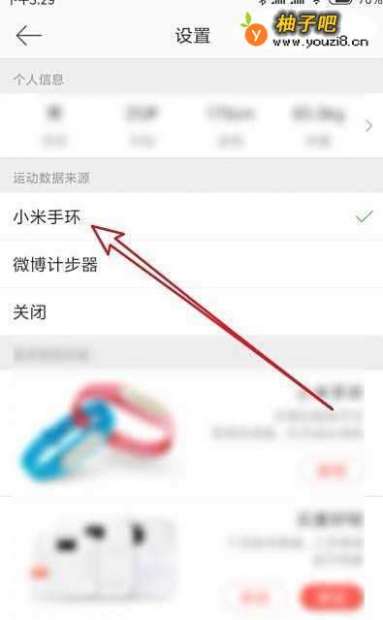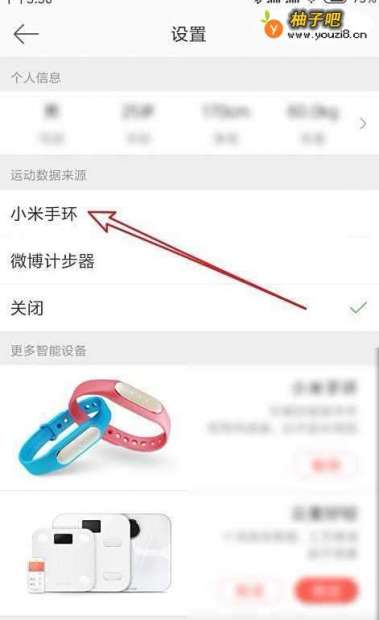 7在这里我们点击选中“小米手环”菜单项,这样我们的小米手环数据就可以与微博运动数据同步了。