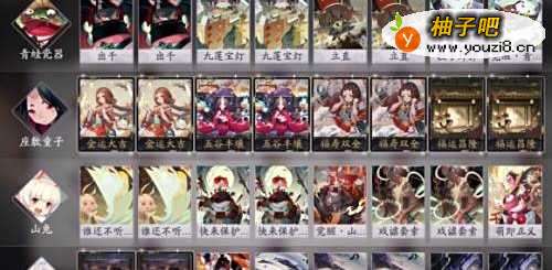 6阵容名:茨木童子迁怒(2)黑焰之手(2)鬼之手(2)豪拳(2)青行灯百物语之火(2) 明灯(2) 青灯夜谈(2) 百闻一得(2)妖琴师觉醒.入阵歌(2)觉醒.神乐歌(2)惊弦(2) 魔音扰心(2) 犬神恶●即●斩(2) 心剑乱舞(2)守护(2)心斩(2)
