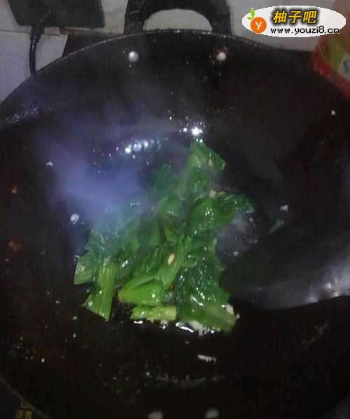 炒的时候不要频繁的去翻炒青菜,翻炒频繁会把菜炒伤,4-5秒翻炒一次就可以。