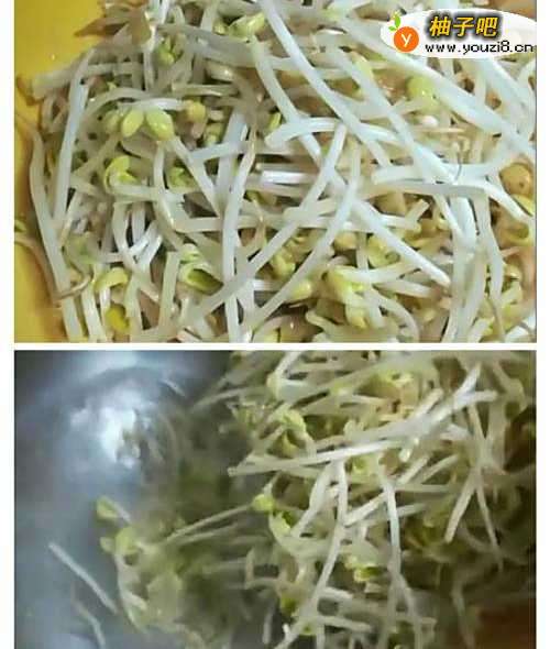2准备豆芽洗净,用开水焯一下捞出备用。