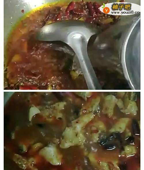 5将葱、姜、蒜、干辣椒放入锅中炒香,加豆瓣酱,加火锅底料,加香辣酱。