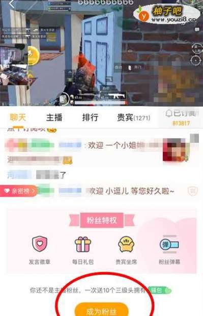 充值过后,回到刚进入的直播界面,再次点击“粉丝徽章”→“成为粉丝”,即可直接送礼物然后卡到牌子。