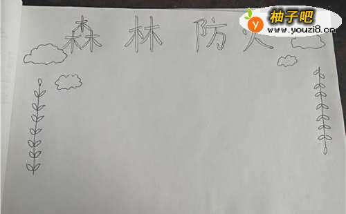 3写好标题后我们在来在标题的两边画上几朵白云来装饰标题。