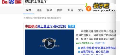 先在百度搜索框中,输入“移动网上营业厅”,找到网站后,即可点击该网站进入。