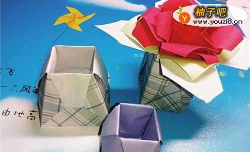 梯形的花瓶外形别致。折一个梯形的花瓶,放一束纸花吧。梯形的花瓶怎么折呢? 3长方形花瓶的折法