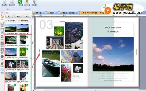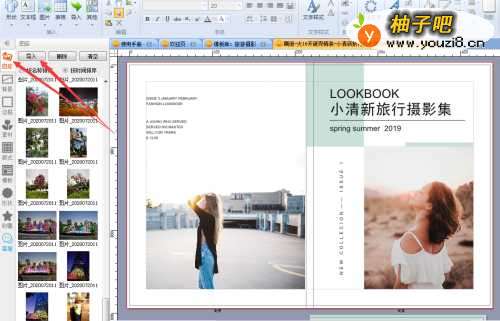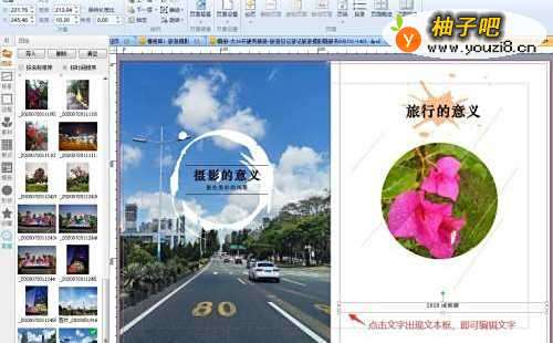 操作方法:先点击模板中的图片,出现模板框后,将图库中的图片拖入模板框,图片自动调整大小。