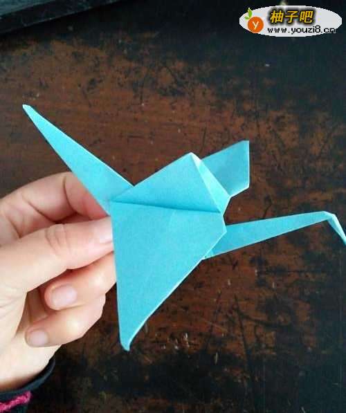 9我们把小鹤的翅膀向下折折平即可。