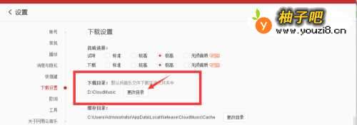 2、下载设置中能看到下载目录,找到对应目录就可以找到下载的歌曲了