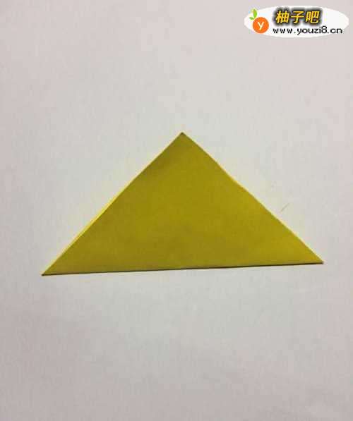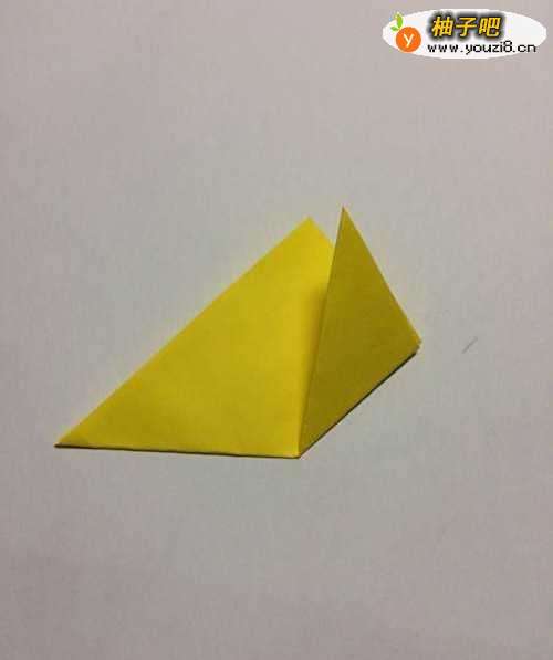8把右边的刚压平的三角形上面的小三角,沿着折痕向内折叠。